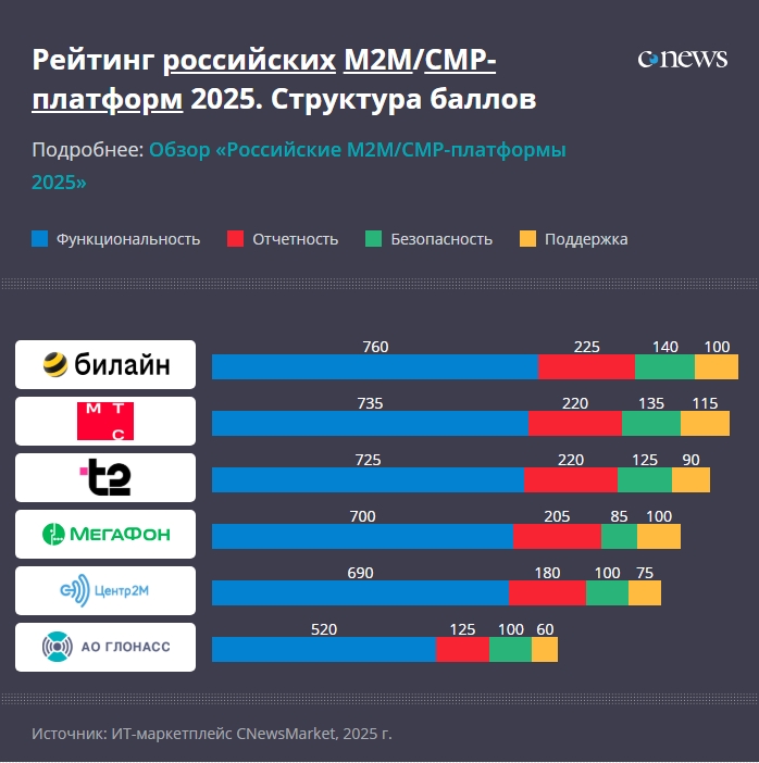 CNewsMarket: Рейтинг российских платформ для управления M2M-устройствами 2025